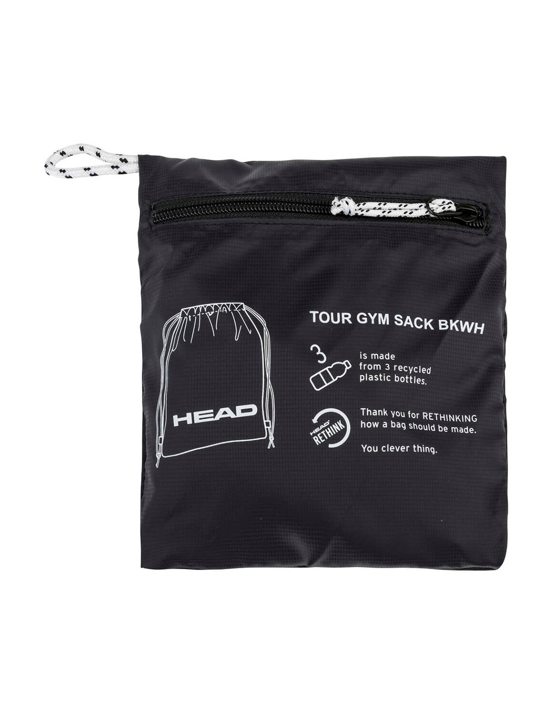 Keep everything you need in this redesigned Head Tour Gym Sack made from recycled bottles. When not in use, you can store it in its zippered pocket.
