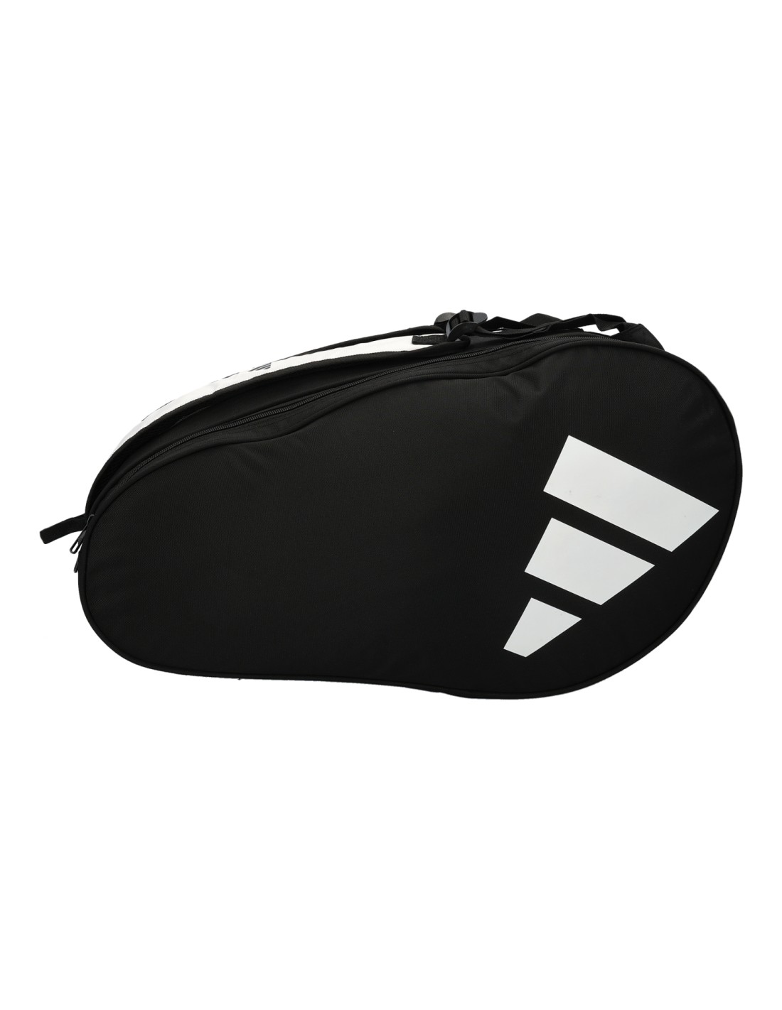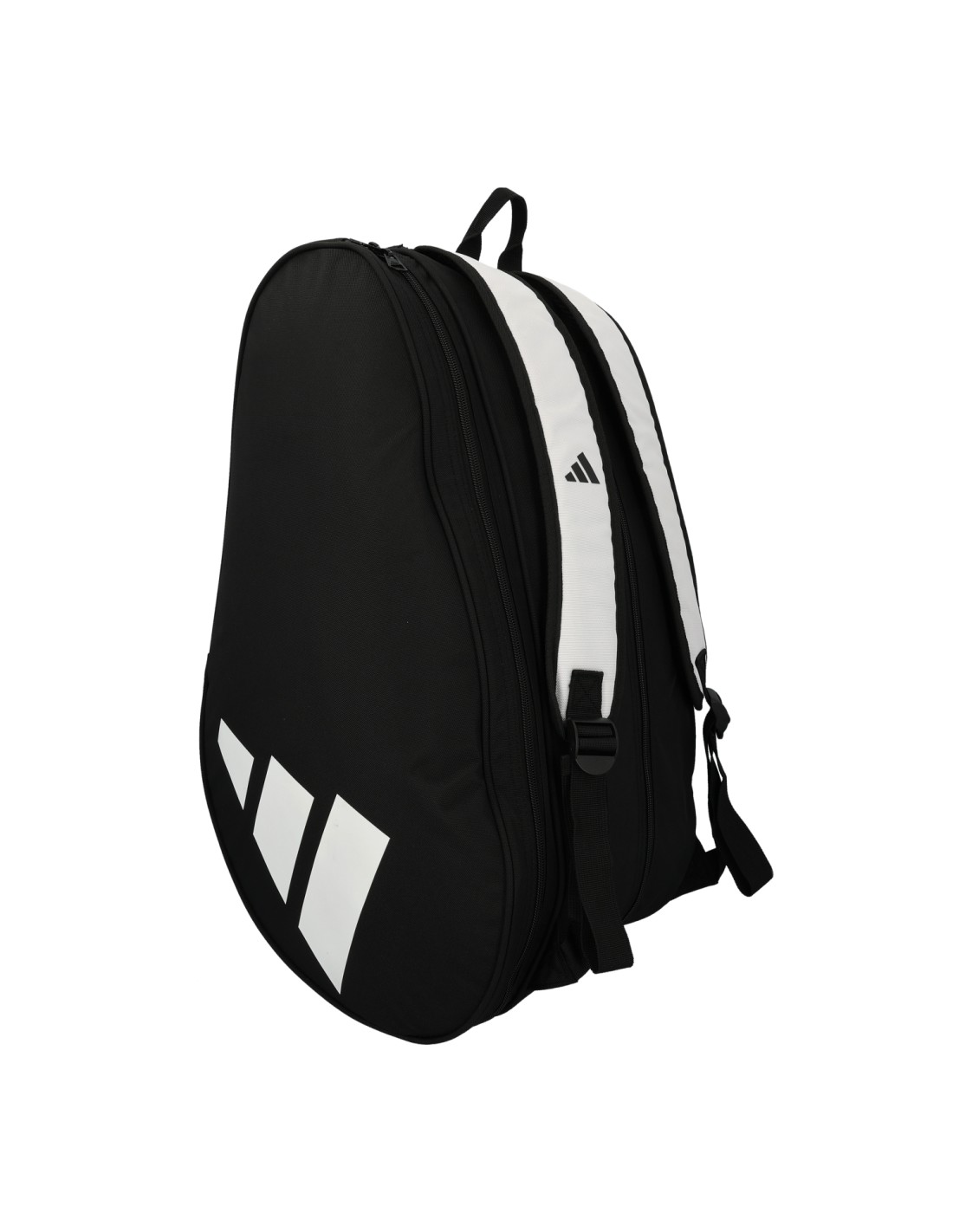 ADIDAS Conrol Black White padel racket bag, With great capacity and style. -Central zippered compartment -Independent compartment for the racket Side pockets specially designed to store personal items - Adjustable and padded straps -Top handle 100% polyester Dimensions: 57 X 32 X 40 cm approx.
