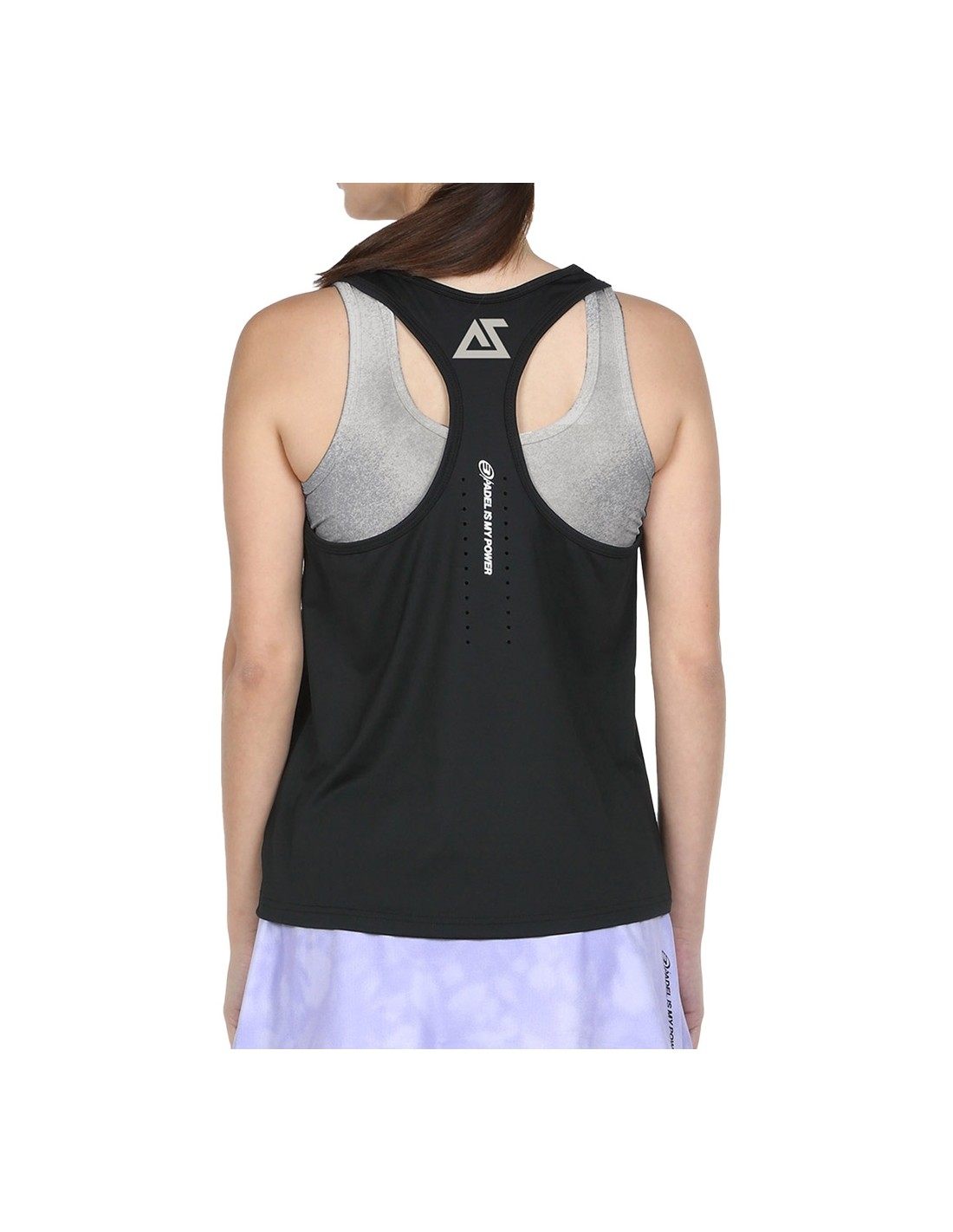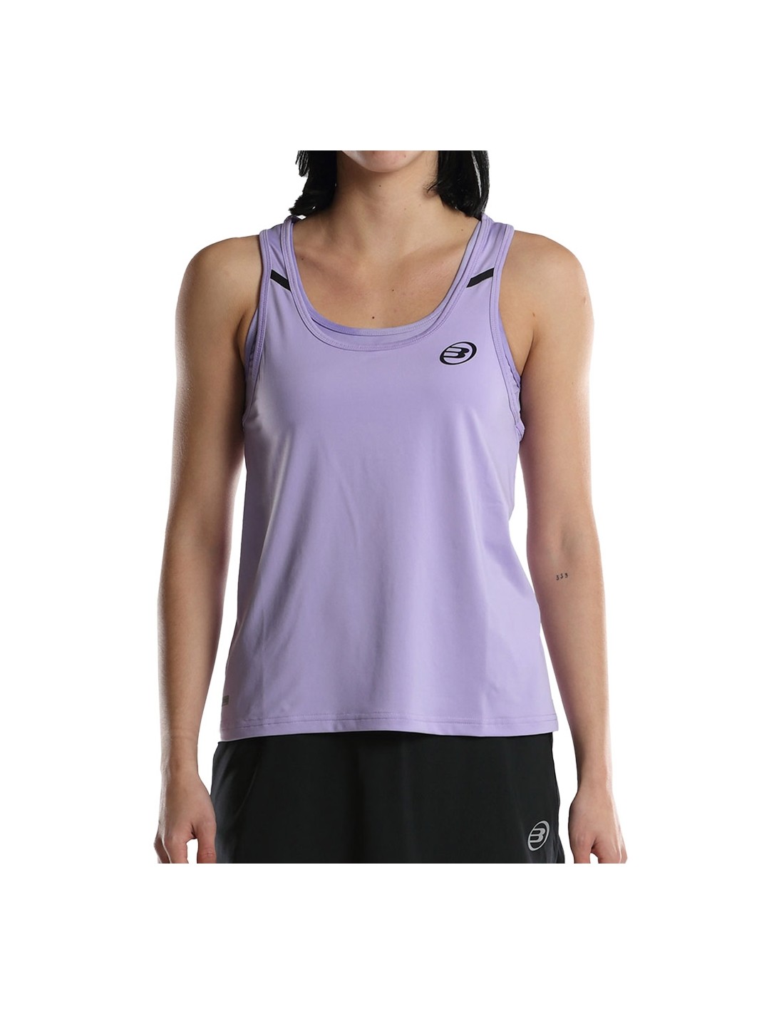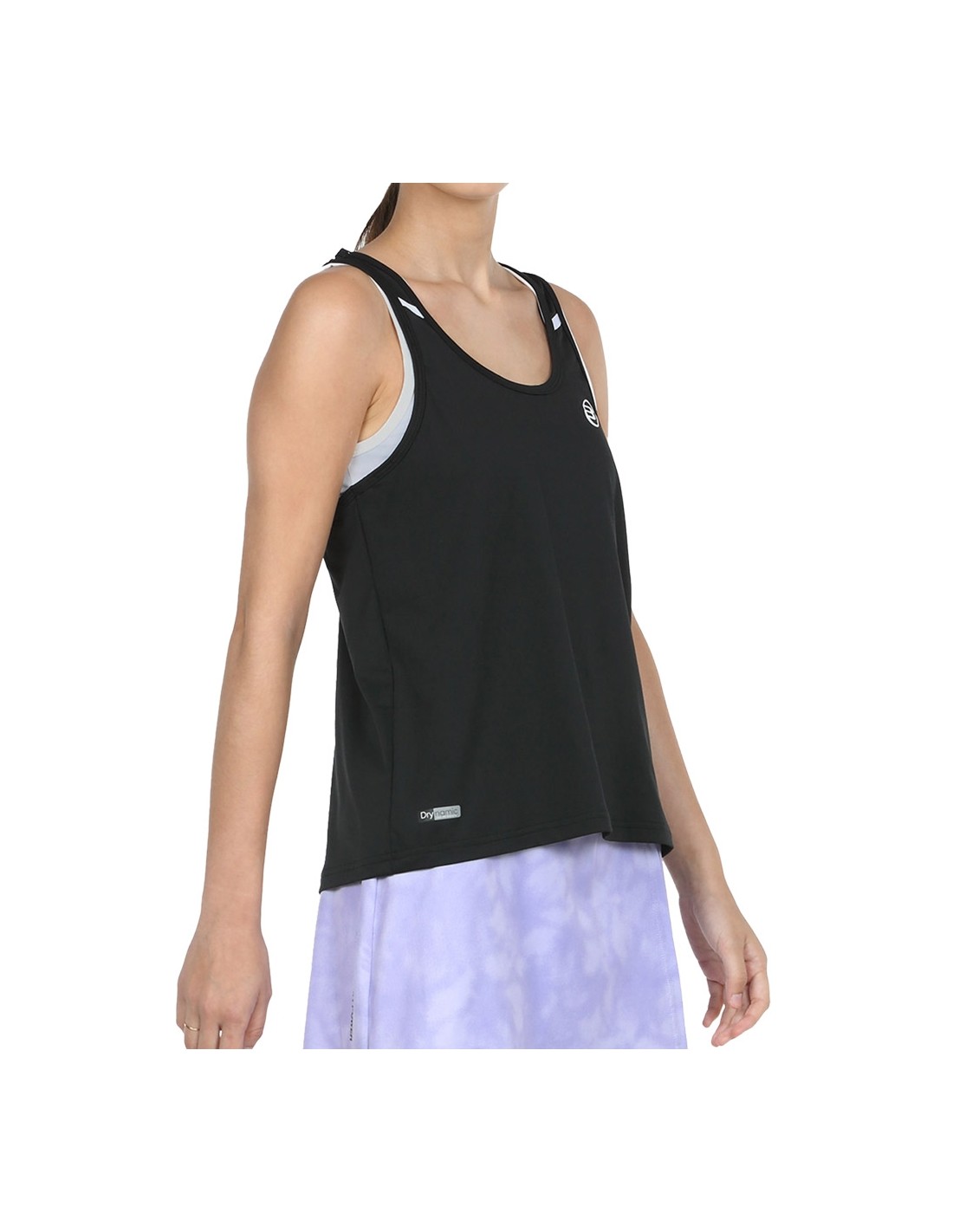 The Bullpadel Erase tank top is part of the personal collection of the outstanding player Alejandra Salazar. This high-performance garment combines an elegant and sporty design. It is made from a blend of polyester and spandex, which guarantees comfort and flexibility. Its crossed straps on the back, round neckline and wide silhouette are designed to offer greater comfort to the players. In addition, it has a printed inner top and perforations on the back that facilitate perspiration. It incorporates Drynamic technology, which uses microfilaments to minimize humidity and improve ventilation. It is part of the brand's Power line.