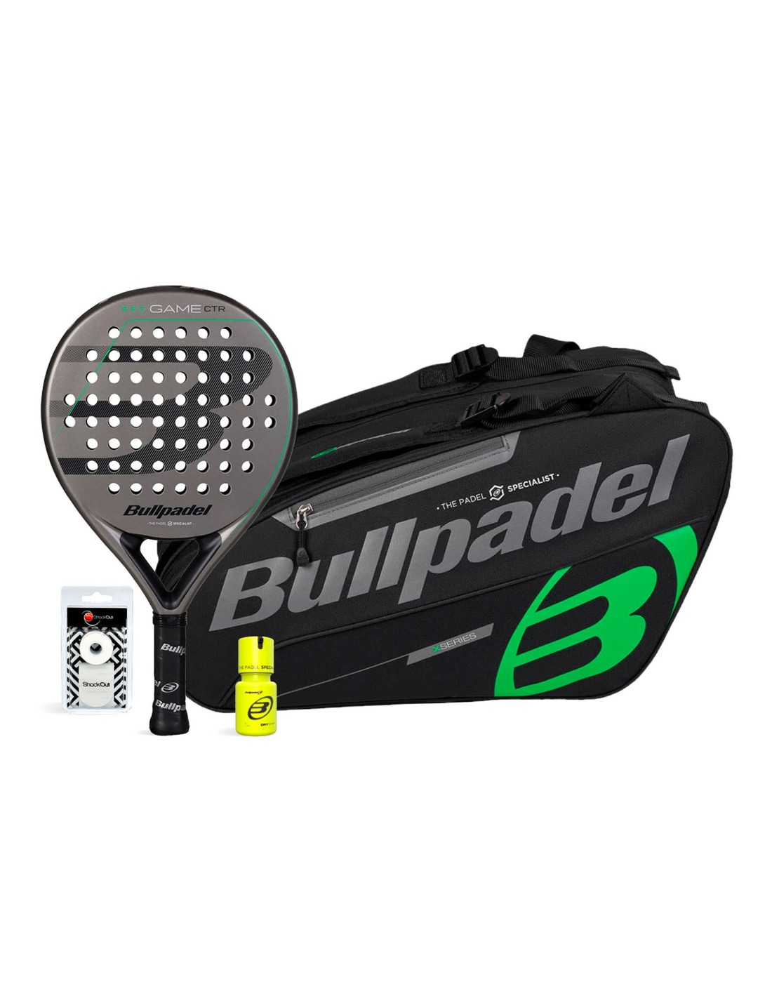 Pack Bullpadel Game CTR Gray + Padelbag Tour Black + Dry grip