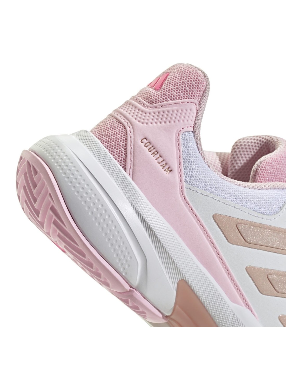 The pink Adidas Courtjam Control 3 for women is the perfect ally for those seeking durability and performance on the court. Designed specifically for hard surfaces and padel, these shoes offer exceptional traction thanks to their non-marking AdiWear rubber outsole, ideal for quick movements and changes of direction.
