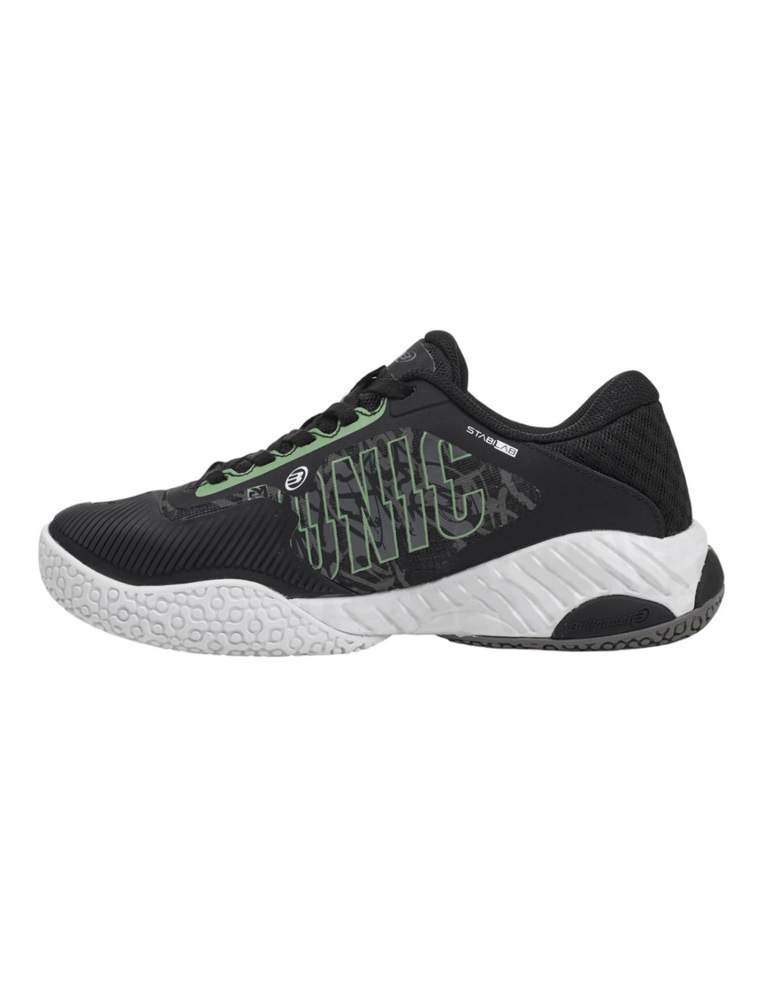 Bullpadel Ionic 25V Green Women, Confort and agility The Bullpadel Ionic 25V Green Women are perfect for players seeking a balance between mobility and grip with every step. Their 360º hybrid sole with Flex Rift, designed to adapt to any type of surface, offers exceptional traction and smooth movements. Made with high-quality materials and a casual design, these Shoes Bullpadel women stand out for their comfort, durability, and breathability, ideal for intense matches. Inspired by young padel promises like Claudia Jensen and Claudia Fernández, this Bullpadel 2025 footwear is designed for intermediate and advanced players looking to improve their performance. Whether you're honing your skills or competing in tournaments, this model perfectly adapts to your needs, providing the necessary support in every play. Advanced features and technologies Hybrid sole and Flex Rift: combines grip, flexibility, and mobility on different surfaces Upper with Breathmesh: provides Confort and freshness Toughtoe rubber toe cap that reinforces and adds abrasion resistance Seamless ergonomic design that adds lightness, flexibility, and flexibility Lateral Movement: heel support, quick recovery, and cushioning Stictch Insole: EVA insole with reinforcement for excellent Confort Bys System: optimal foot support thanks to the stabilizer at the back Dominate the playing field with Bullpadel Ionic 25V Green With the Bullpadel Ionic 25V Green Women, you will not only improve your performance but do so in style. Their modern design, combined with advanced technologies, makes them an essential choice for any padel player. Get them now and reach your maximum potential!