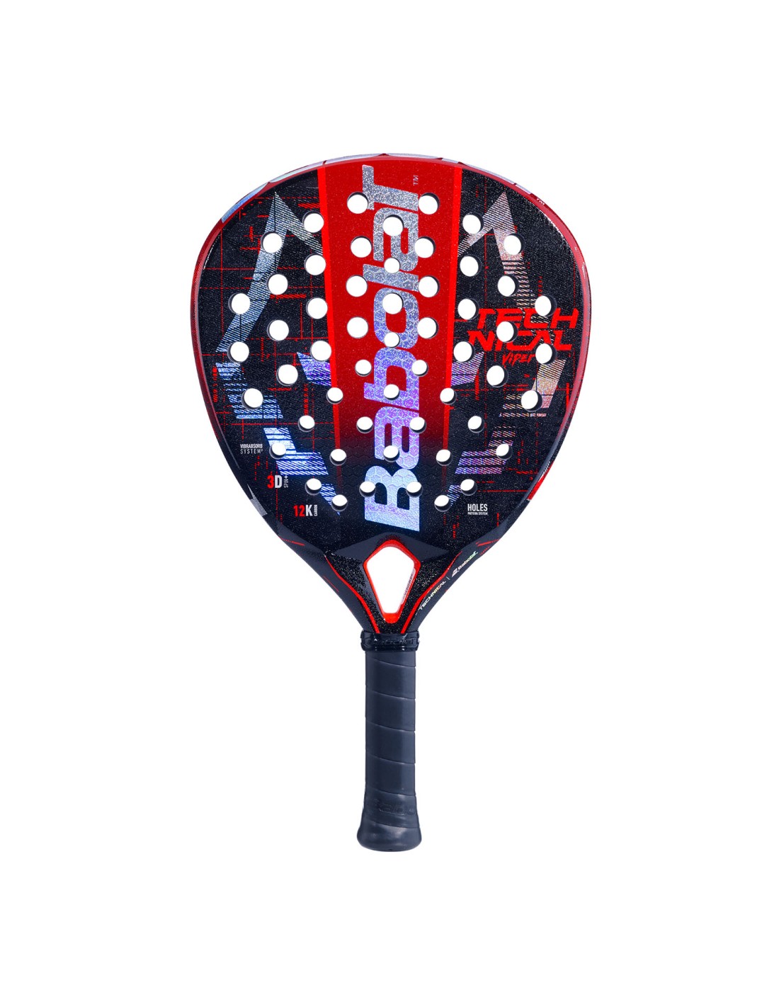 Power is combined with explosiveness and intensity thanks to the carbon manufacturing tailored for the player. Perfect to make a difference and overcome any rival. Thanks to the hole pattern adapted to the diamond shape, this racket will make your hits more decisive. It has Smart Buttcap , a system that allows the removal of the cord that can be washed and changed. The reliefs on the surface are combined with the rough finish , which allows you to give more effect to your shots and have greater control of the game. The Vibrabsorb System technology allows optimal absorption of vibrations, thanks to the combination of elastomers integrated into the carbon fibers in the heart of the blade.