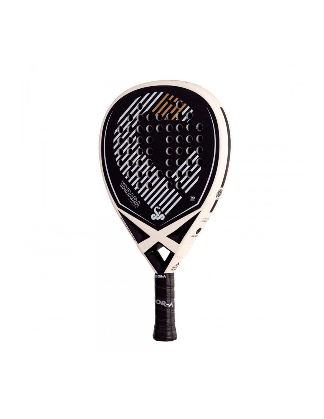 The Vibor -A Yarara Xtreme Fiber Black padel racket belongs to the brand's 2025 collection. Its sophisticated design and its functionality in the bridge provide stability and an excellent response in demanding game situations.