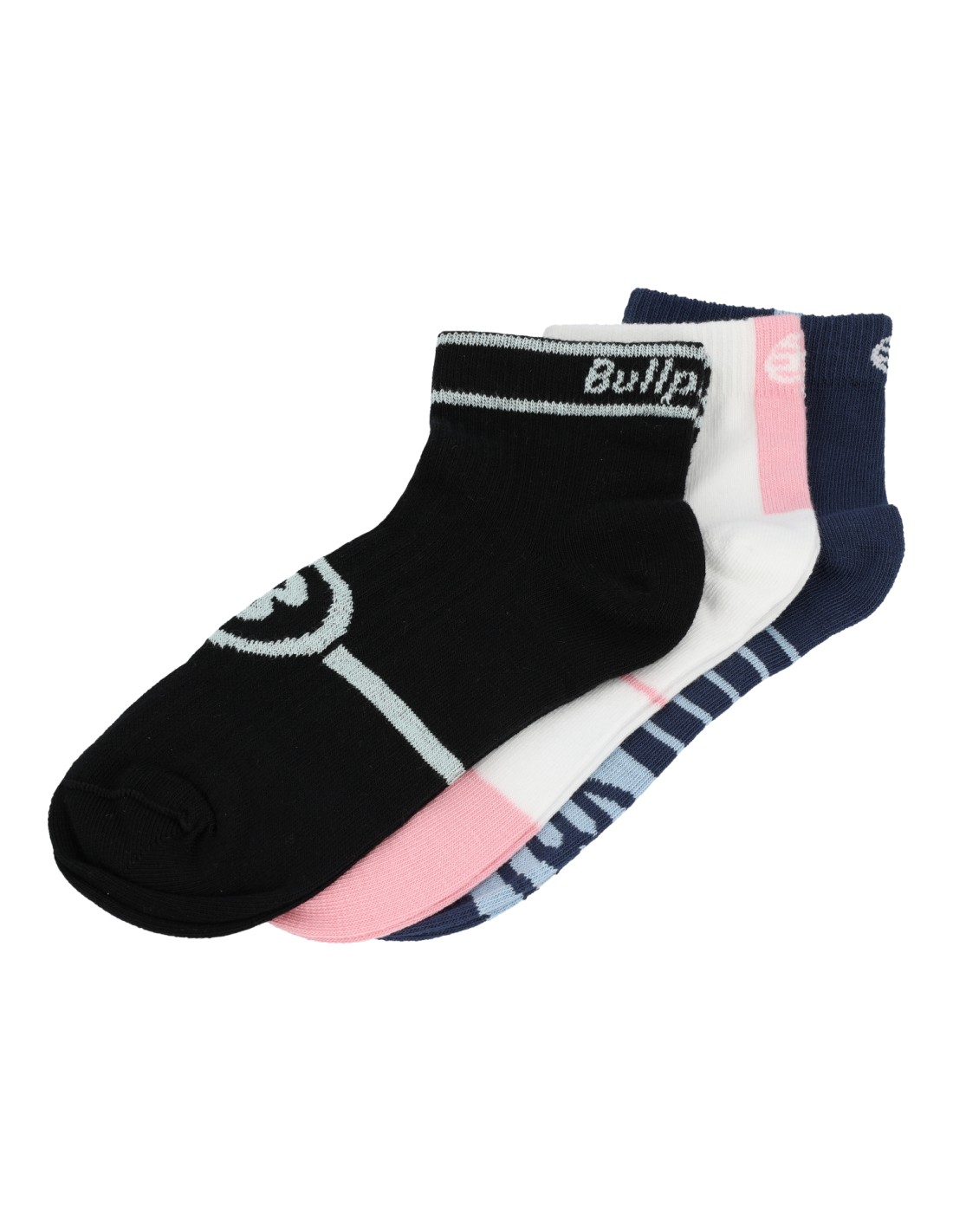 Calcetines Bullpadel BP256: un trío de calcetines hechos de algodón suave y transpirables. Su diseño ergonómico y suela acolchada te garantizan confort y frescura en cada partido de pádel o tenis.