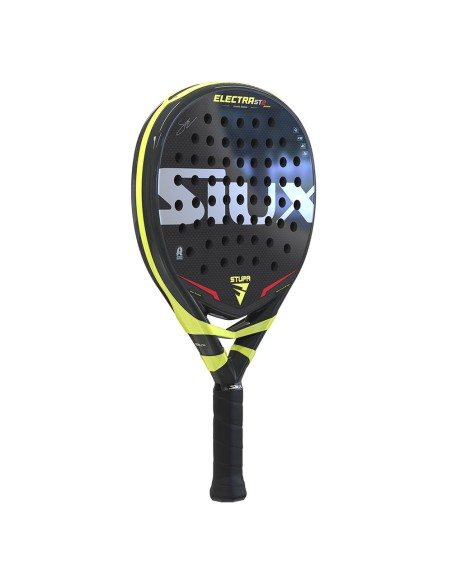 Con un diseño deportivo en negro, adornado con detalles en amarillo y rojo, y el logo de la marca en blanco con un acabado brillante, esta Pala también lleva la firma del profesional Stupa. La Siux Electra St2 Junior es una Pala de alta calidad que ofrece un rendimiento superior a un precio inmejorable.