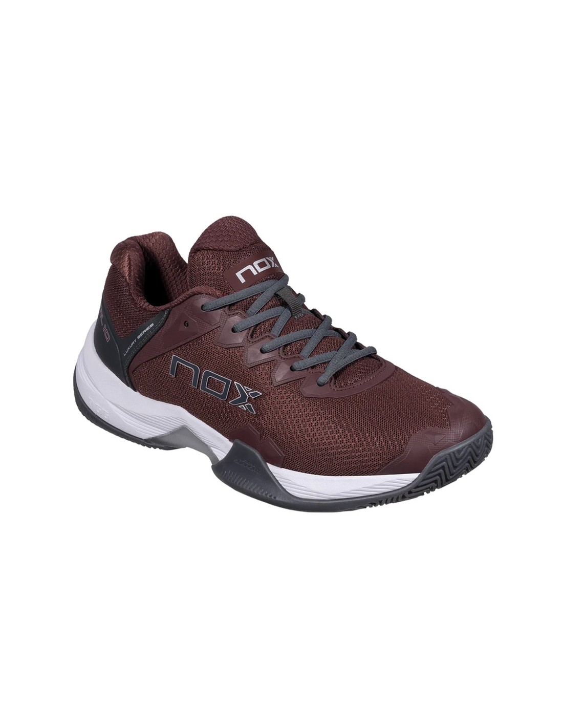 El diseño de las Nox Ml10 Hexa es una combinación de elegancia y modernidad, con un toque deportivo. El empeine en color granate se complementa con detalles Nox en gris, una suela de Espiga en plomo y otros detalles en blanco, asegurando que no solo rindas al máximo, sino que también luzcas increíble en la pista.