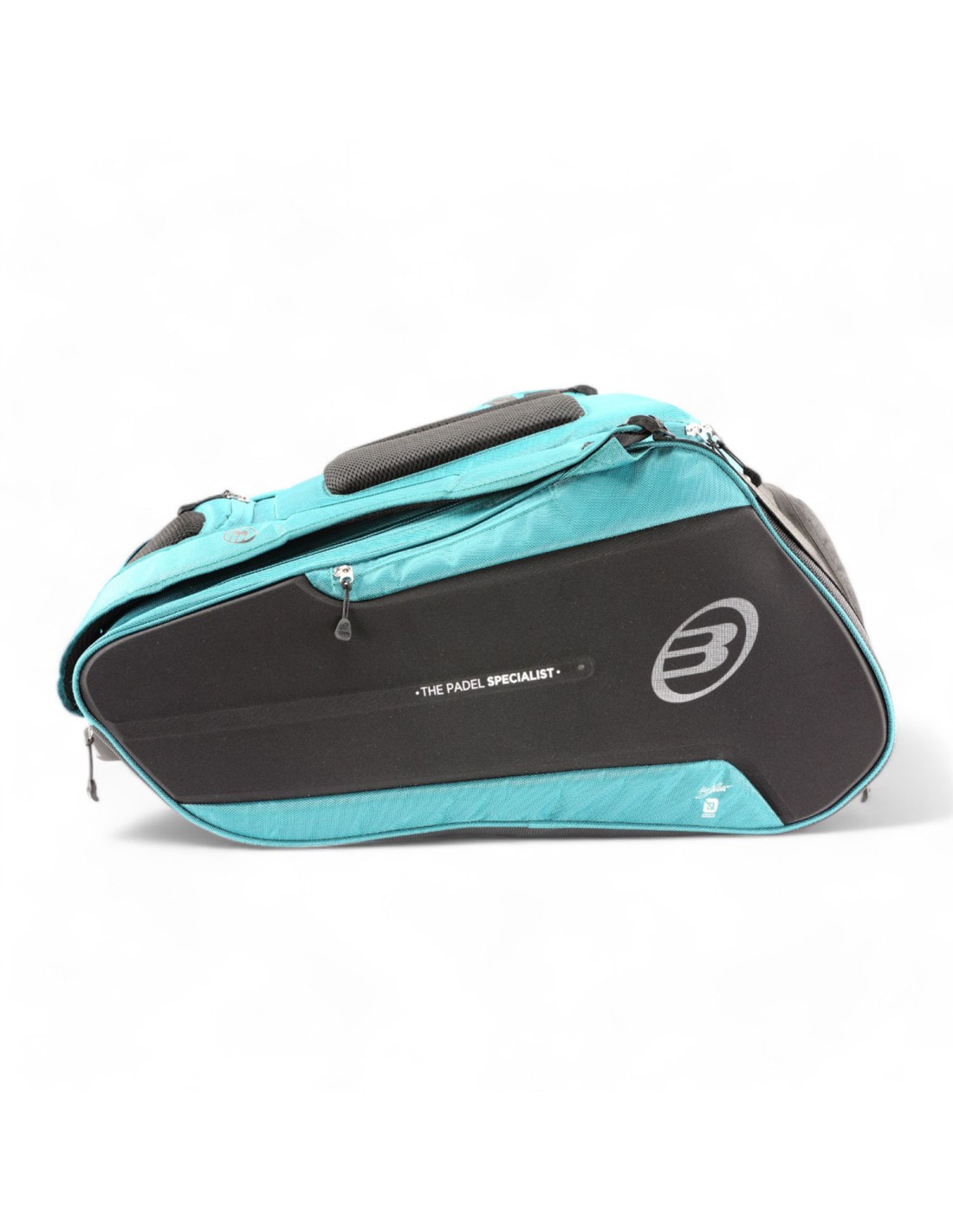 Projetada para os seguidores de Paquito Navarro, a bolsa de padel Bullpadel Hack petróleo se destaca como o complemento perfeito para a raquete de padel Hack 04. Inclui um amplo compartimento principal , duas seções térmicas capazes de armazenar até quatro raquetes de padel e um compartimento ventilado e separado. área ideal para seus sapatos e roupas. Suas laterais possuem carcaça semirrígida que proporciona proteção superior às suas raquetes. O design ergonômico do protetor traseiro, com inserções de espuma, garante conforto e ventilação em todos os momentos.