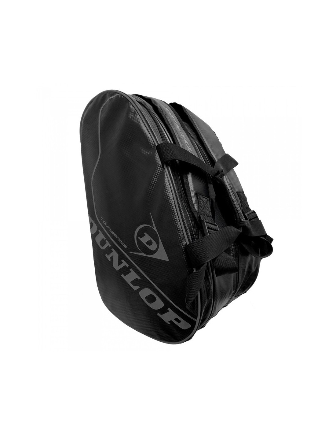 A Dunlop Tour Intro Carbon Pro Black Padel Bag tem dois compartimentos para raquetes, roupas e acessórios.