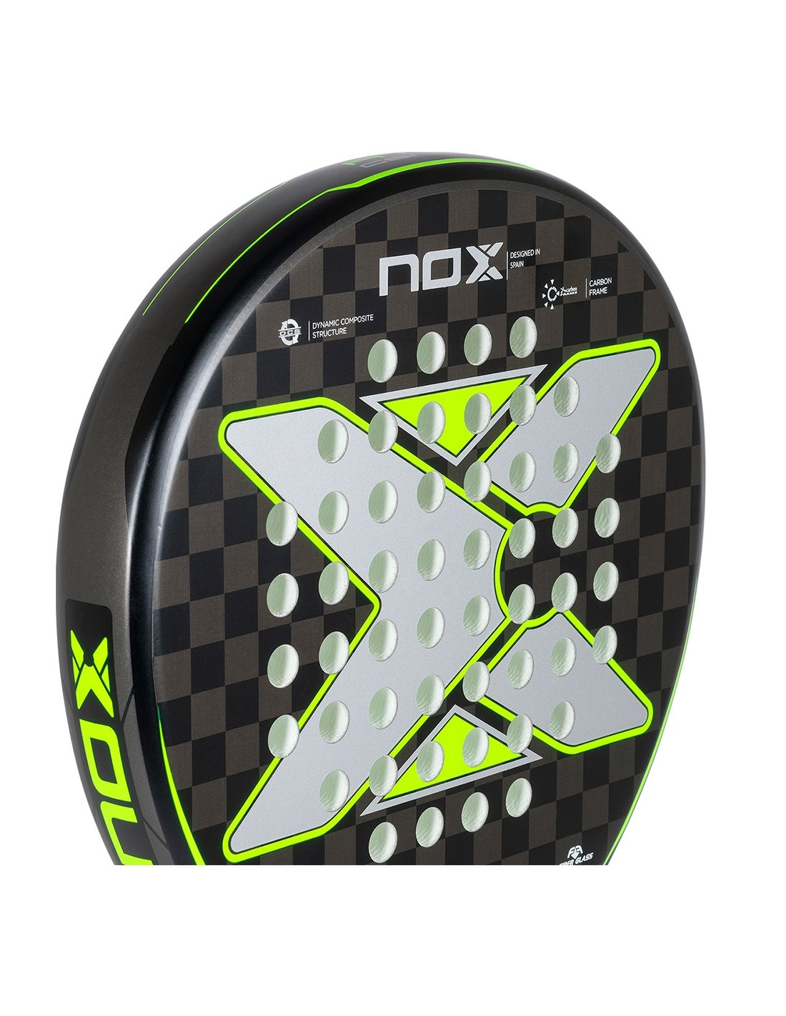É uma raquete de padel leve que beneficia o controle, com núcleo de borracha eva, para jogadores de nível intermediário, possui quadro de carbono e face de fibra de vidro com perfil baixo.