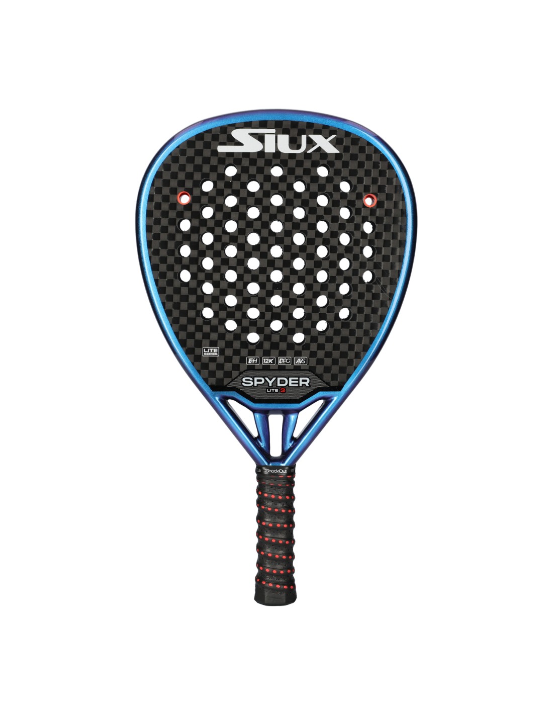 Siux A nova raquete Spyder Revolution Attack Hard Lite é um modelo destinado aos jogadores de ataque que procuram raquetes manejáveis e leves. Tem uma forma de diamante e um equilíbrio elevado, o que lhe confere um toque duro. A superfície é desenhada com Carbono 12k, a estrutura tubular em Carbono 3k e o núcleo em borracha EVA Hard, o que proporciona maior potência ao bater. Pro Também possui o sistema de absorção Dual Grip , que melhora a aderência e reduz as vibrações. E amortecedores, pequenos tubos colocados nos orifícios da raquete, que reduzem as vibrações produzidas pelos impactos.