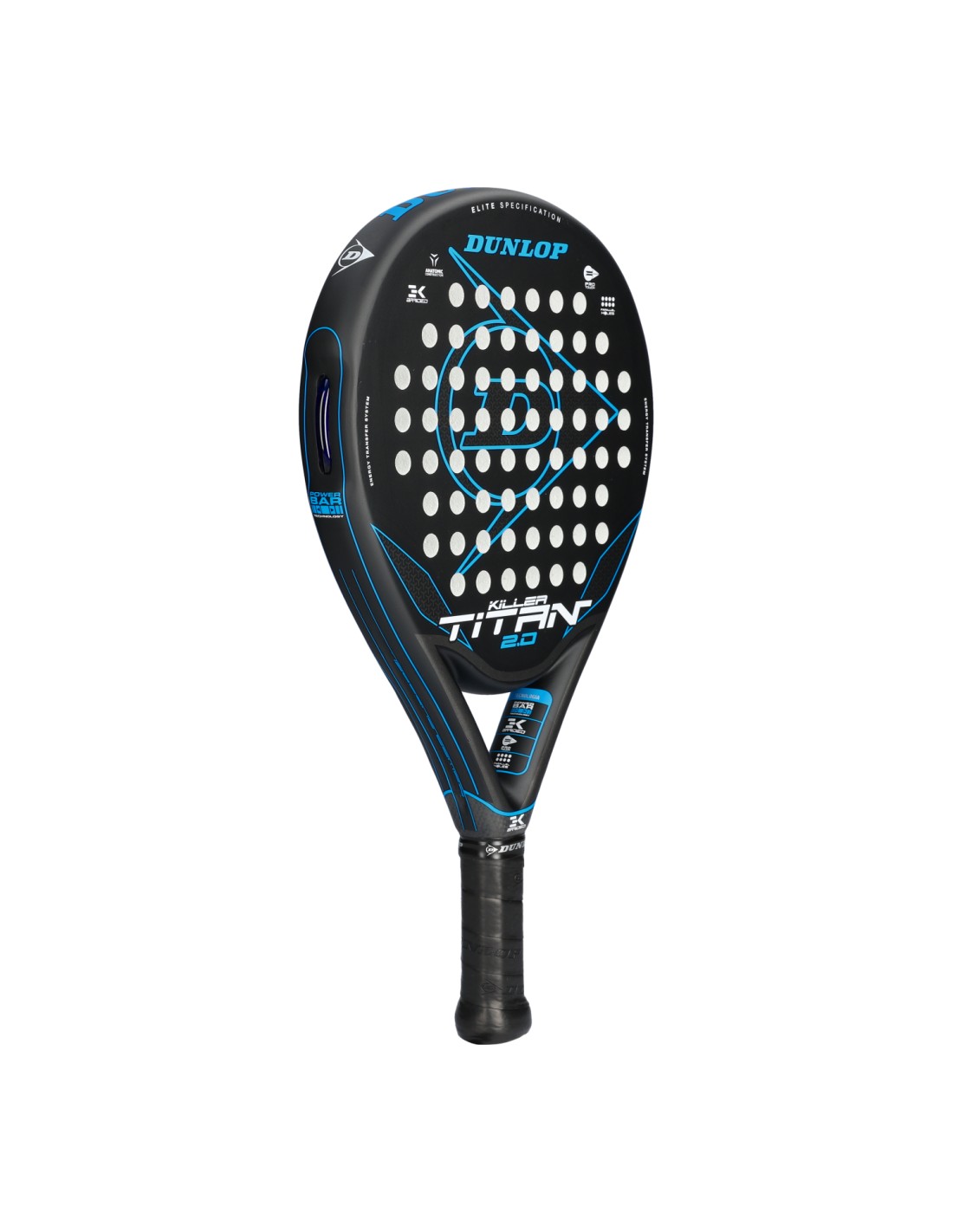 A raquete Dunlop Titan Killer 2.0 faz parte da coleção 2024 da marca. É uma raquete elegante e moderna, com detalhes em preto e azul. É projetado com materiais de alta qualidade e alta resistência. Peso entre 360-375 gramas .