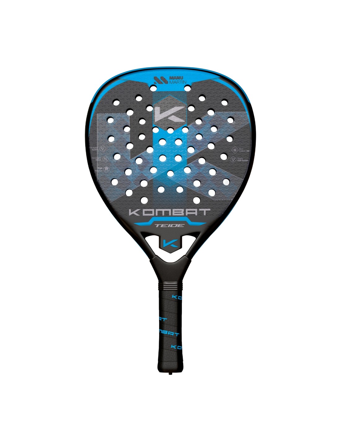 A raquete de padel Kombat Teide , da coleção 2025, foi pensada para que você aproveite ao máximo cada partida. Com design moderno nas cores azul e preto, e a logo do renomado ex-jogador Manu Martín na parte superior, esta raquete oferece não só ótimo desempenho , mas também um toque diferenciado de profissionalismo no seu jogo.