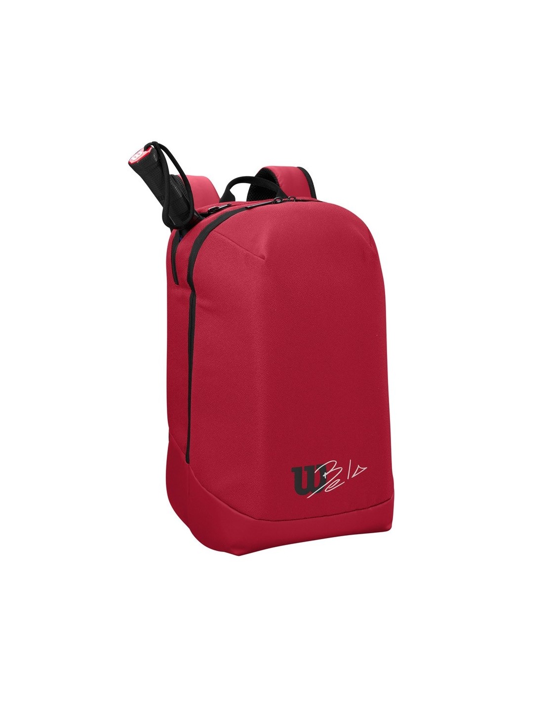 Este paletero é feito com tecido de poliéster texturizado, por isso é altamente resistente, flexível e leve . Também incorpora o logotipo da marca "Wilson" e a assinatura do jogador Fernando Belasteguín. Esteticamente é vermelho com as costas, fecho e pequenos detalhes em preto para um acabamento mais sóbrio e intemporal.